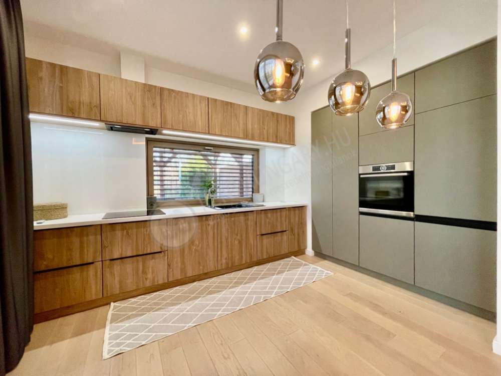 - RÉSZBEN BERENDEZETT: beépített gardróbszekrények, beépített tárolószekrények, prémium kategóriás konyhabútor