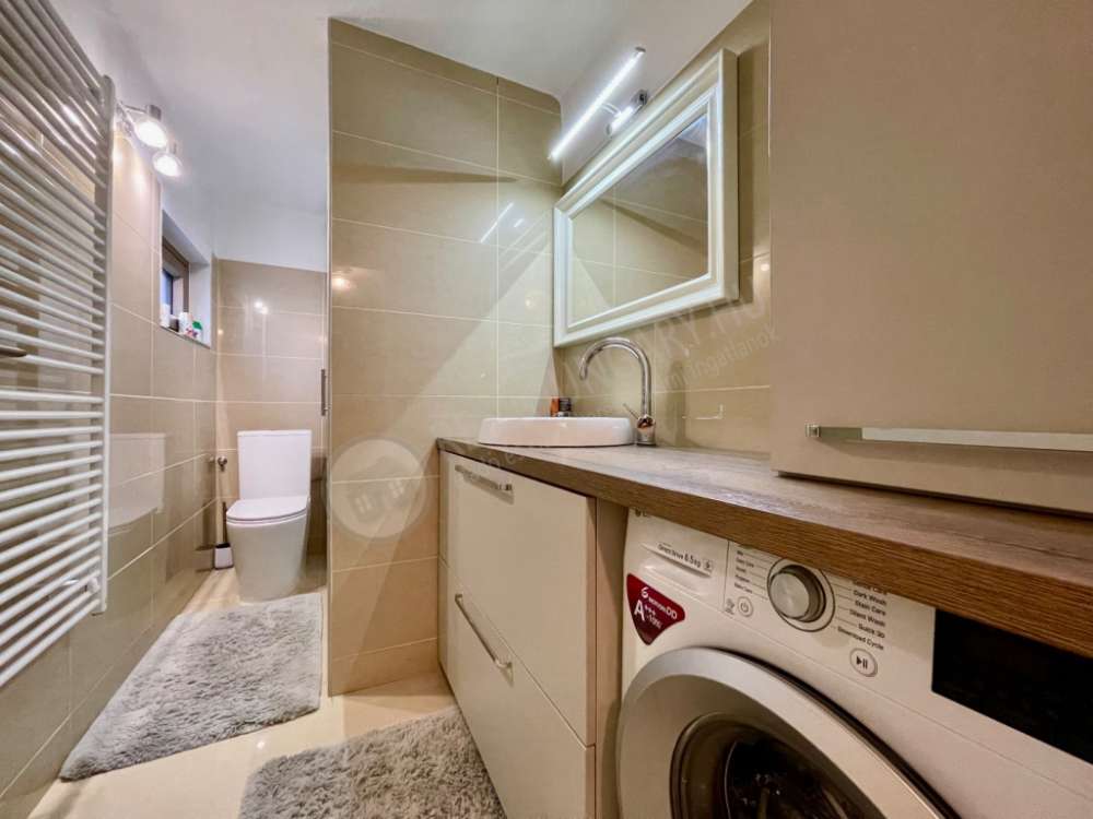 - GÉPESÍTÉS: BOSCH márkájú minden konyhai gép: elektromos főzőlap, elektromos légkeveréses sütő, mosogatógép, beépített hűtőszekrény fagyasztóval, valamint a fürdőszobában mosógép